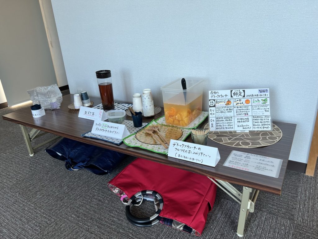 なお、本堂は清らかな場所です。お飲み物がこぼれないよう、容器の水滴などが床につかないよう、ご配慮ください。